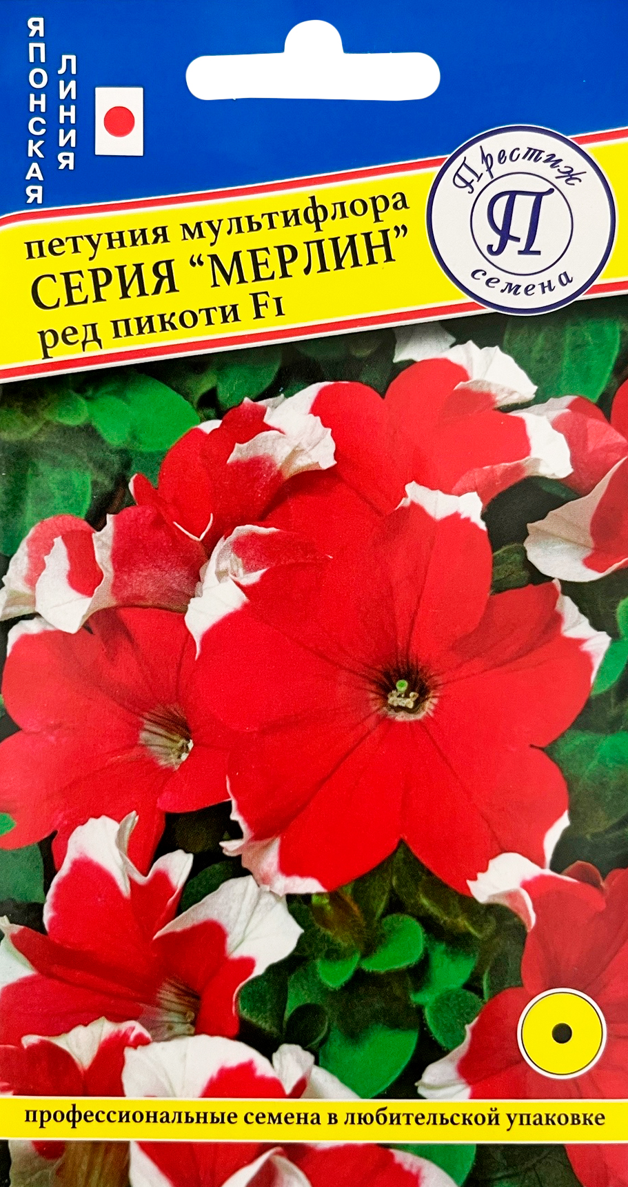 Петуния Мерлин Ред пикоти F1 10штПетуния Мерлин Ред пикоти F1 — один из популярных сортов низкорослых петуний. Множество мелких цветков обильно покрывают компактный кустик, красно-белая окраска сочетается в посадках с другими сортами серии. Растения высаживают в горшки и контейнеры, культура устойчива к неблагоприятным погодным условиям.