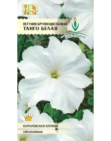 Петуния – одно из самых распространенных травянистых цветочных растений. Многолетнее, но выращивается как однолетник. Обильно цветет крупными ароматными воронковидными цветками белой окраски. Растение теплолюбиво, засухоустойчиво и светолюбиво, предпочитает расти на солнечных, открытых местах. К почвам нетребовательно, достаточно любой, в меру плодородной. Уход заключается в регулярных подкормках и поливе. Используется для создания клумб, рабаток и бордюров, озеленения балконов – прекрасно растет в ящиках, кашпо и горшках.Высота растения - 25 см