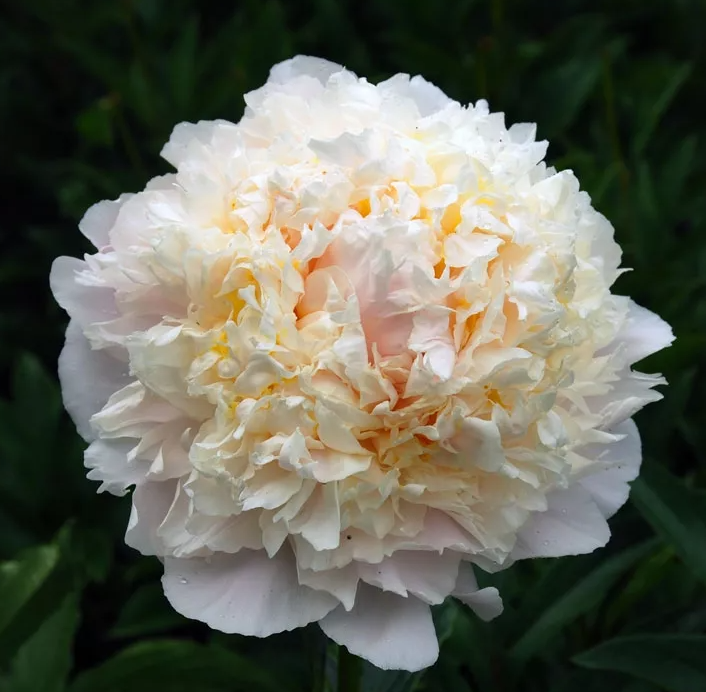 Махровый бомбовидный. Цветок диаметром 20 см, в начале плоский, с несколькими рядами белых лепестков и желтыми петалодиями в центре. Затем вырастающая корона из белых лепестков перекрывает жёлтые петалодии. Высота 90 см. Стебли мощные. Листья крупные, тёмно-зеленые.Характеристики