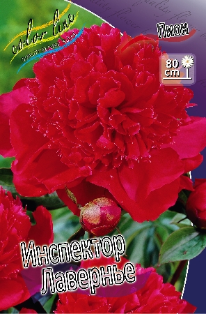Пион Инспектор Лавернье - относится к группе молочноцветковых, травянистых. Цветки: карминно-красного цвета, создается ощущение, будто они бархатистые на ощупь, махровые, диаметром 15 см. Зацветает в мае - июне, цветение обильное. Имеет легкий аромат. Листья тёмно-зелёные, с красным оттенком. Высота растения 90 см. Период посадки растения: со второй половины августа до начала октября. Глубина посадочной ямы составляет 50-60 см, при этом корневище углубляется так, чтобы расстояние от верхней почки до поверхности земли составляло не более 3-5 см. Место для посадки - солнечные, безветренные места. В тени пион хорошо развивается, но не цветет. Пион Инспектор Лавернье засухо- и морозоустойчив. Пион требует плодородной, дренированной почвы. Не подвергается воздействию серой гнили.Характеристики