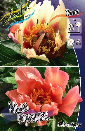 Относится к группе Ито-гибридов, новая группа полученная в результате скрещивания травянистых и древовидных пионов. Цветки желто-оранжевого цвета, махровые, диаметром 17 см. Зацветает в мае - июне, цветение обильное. Имеет легкий аромат. Листья тёмно-зелёные. Высота растения 70 см. Период посадки растения апрель-май, август-сентябрь. Глубина посадочной ямы составляет 50-60 см, при этом корневище углубляется так, чтобы расстояние от верхней почки до поверхности земли составляло не более 3-5 см. Место для посадки - солнечные, безветренные места. В тени пион хорошо развивается, но не цветет. Пион Нью Оранж засухо и морозоустойчив. Пион требует плодородной, дренированной почвы. Не подвергается воздействию серой гнили. Нью Оранж - сорт, победивший время. Яркий, пылкий и неповторимый - другого такого нет!Характеристики