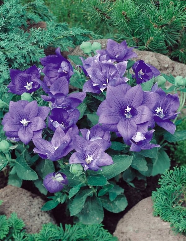 Платикодон Астра Блю многолетнее травянистое растение с крупными колокольчатыми цветками. Компактное, высотой 20-25 см, растение с превосходным ветвлением от основания, что обуславливает большое количество цветков на одном кусте. Цветки большие (около 7,5 см), звездообразные, махровые. Цветет непрерывно весь сезон. Растение неприхотливое, растет как на солнце, так и в полутени, в любой, хорошо дренированной почве. Можно выращивать в горшках, подвесных кашпо, использовать как многолетник в саду.Характеристики