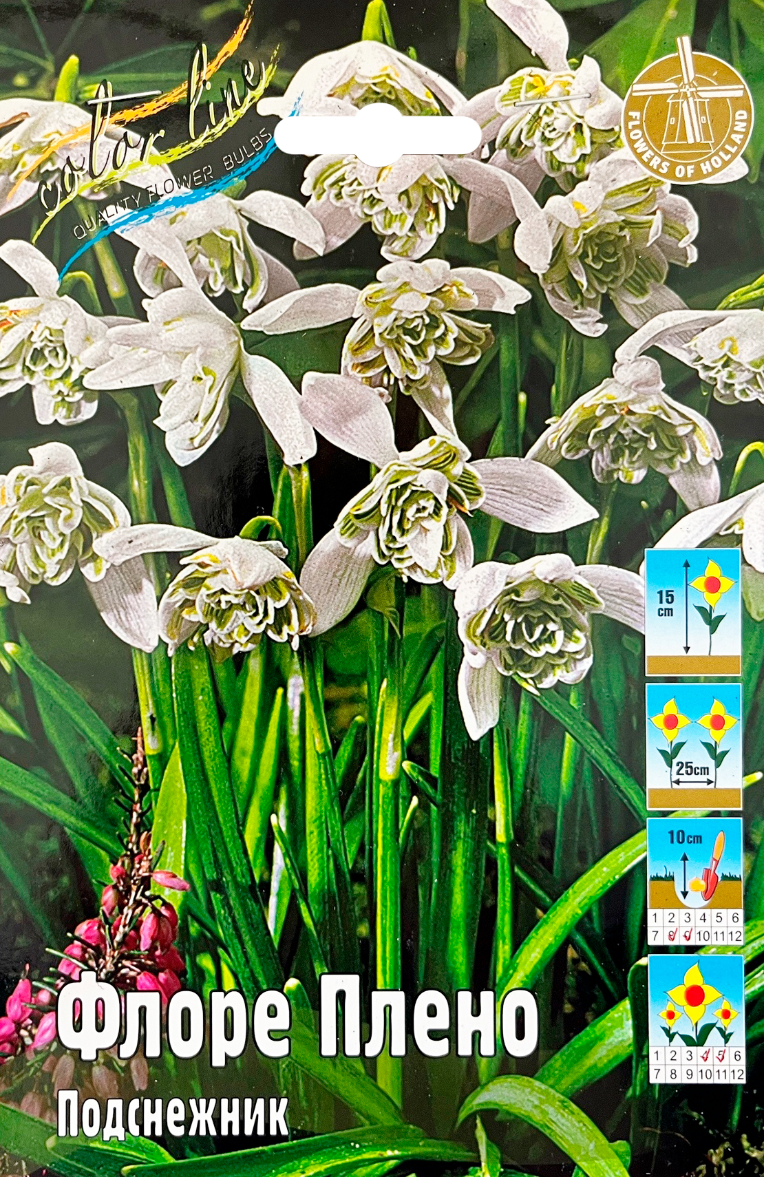 Подснежник Флоре ПленоНевероятно привлекательный махровый подснежник. Растение 15 см высотой, с узкими листьями серо-зеленого цвета и изящными белыми цветками около 2,5 см. На внутренних лепестках присутствуют зеленые полосы, в то время как верхние остаются белоснежными. Это один из самых ранних и красивых весенних цветов, цветение начинается в конце зимы - начале весны. Лучше всего собирать их в широких сугробах под большими лиственными деревьями или высаживать вдоль дорожек или тропинок, где они они будут смотреться наиболее эффектно.