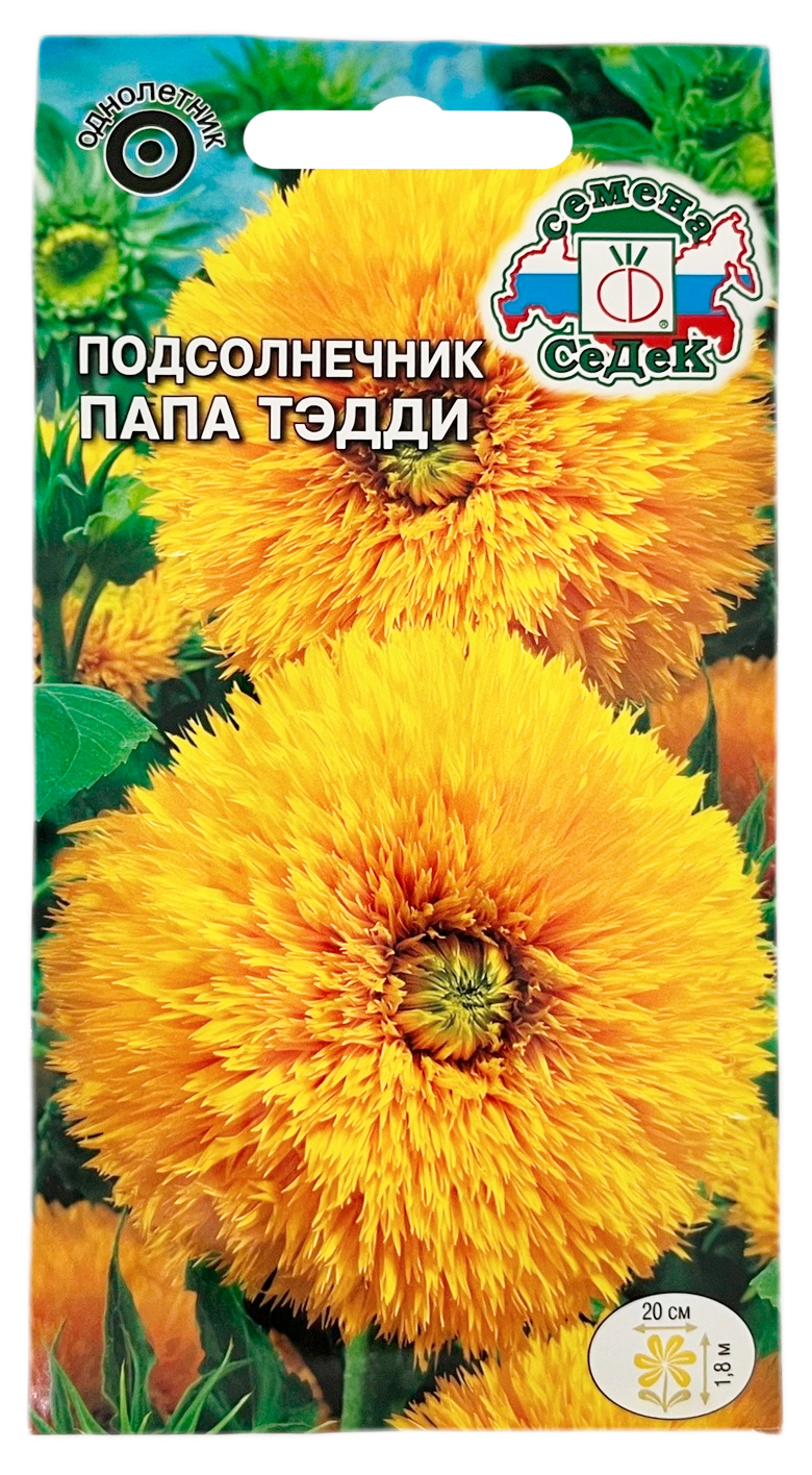 Подсолнечник ПАПА ТЕДДИ СеДеКЭтот сорт с крупными «плюшевыми» соцветиями внесет в облик вашего сада веселые нотки, особенно в сочетании с низкорослым сортом Мишка Тэдди. Соцветия золотисто-желтые, густомахровые, до 20 см в диаметре. Теплолюбив, не выносит заморозков, предпочитает рыхлые окультуренные почвы на открытых солнечных местах. Идеально подходит для декорирования изгородей, строений, прекрасно смотрится в групповых и одиночных посадках. В срезке долго сохраняет свежесть и декоративность.