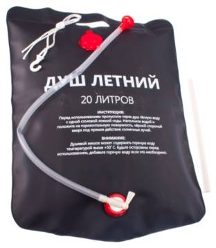 Душ можно подвешивать на крючок к столбу или ветке дерева в саду, или просто привязать к перекладине, или закрепить на перекрытие. Двадцатилитровая емкость душа выполнена со специальной черной поверхностью для быстрого нагревания. Душ изготовлен из высококачественных материалов и будет служить долго и надежно.