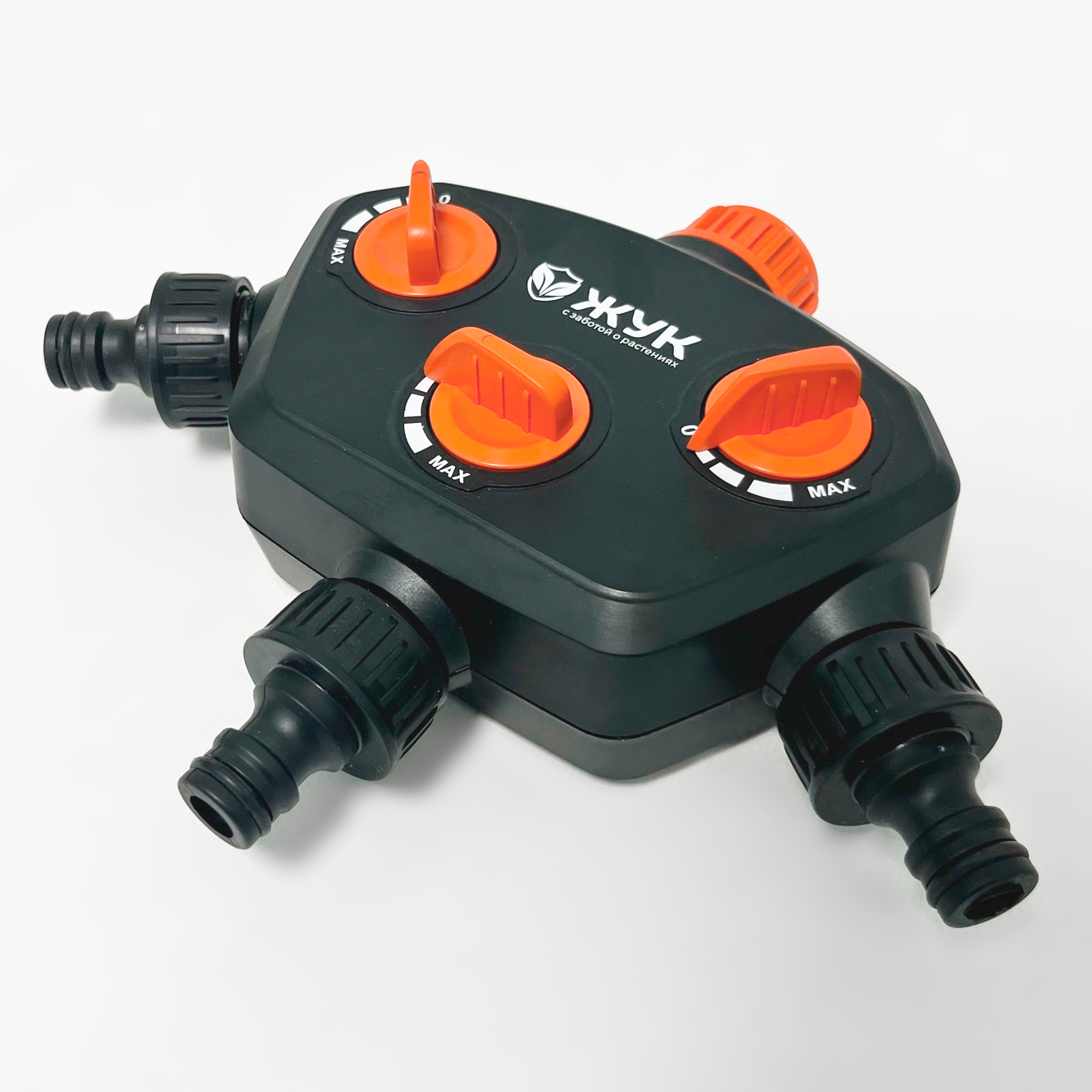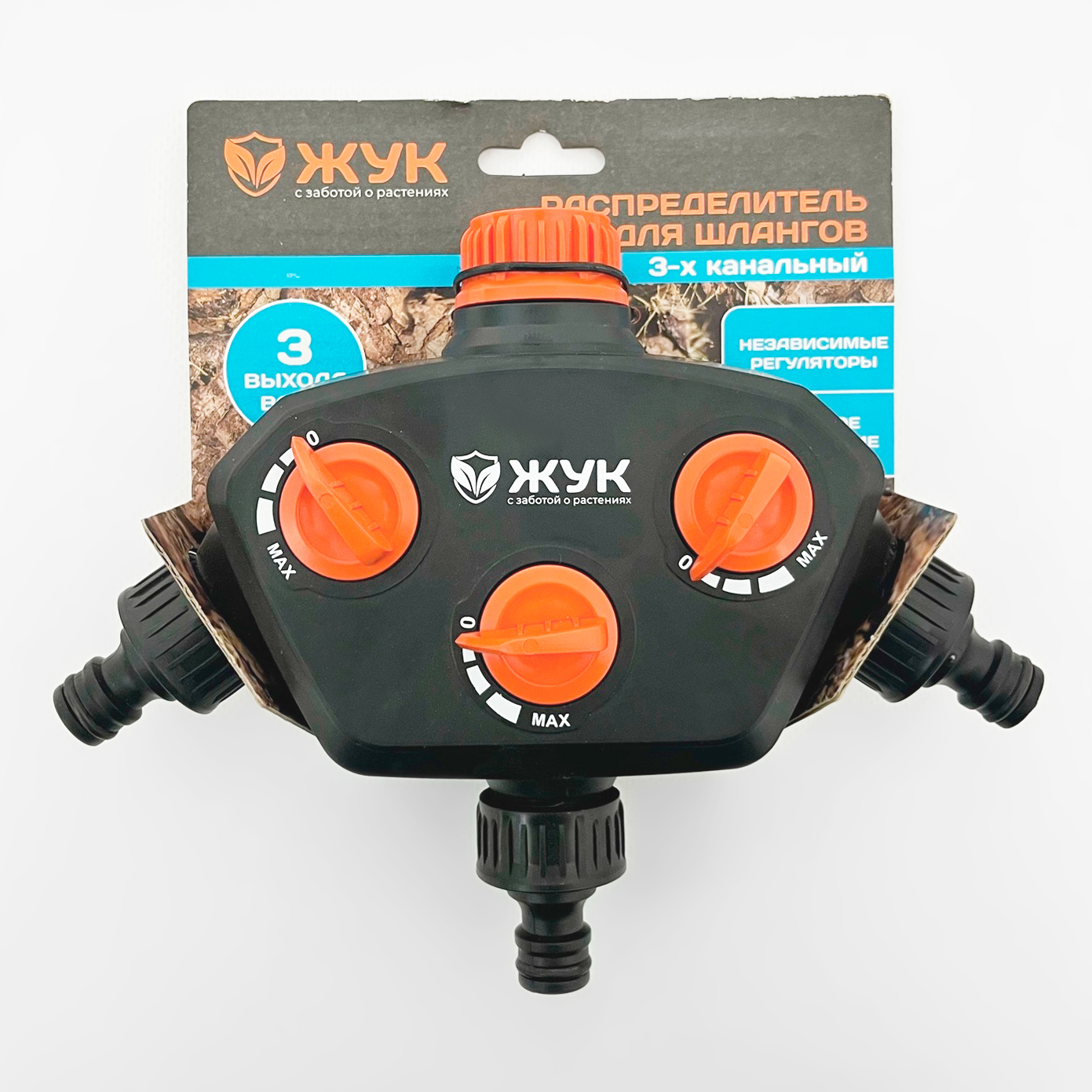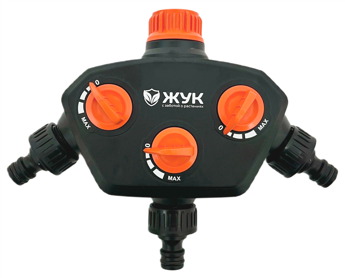 Распределитель для шлангов 3х канальный ЖУКПодходит для использования в сочетании с любыми стандартными садовыми шлангами, отличается высоким качеством, эргономичной конструкцией, простым и комфортным обращением.
