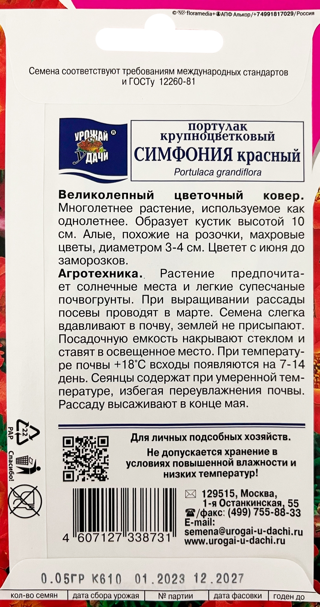 Портулак Симфония красный 0,05г семена