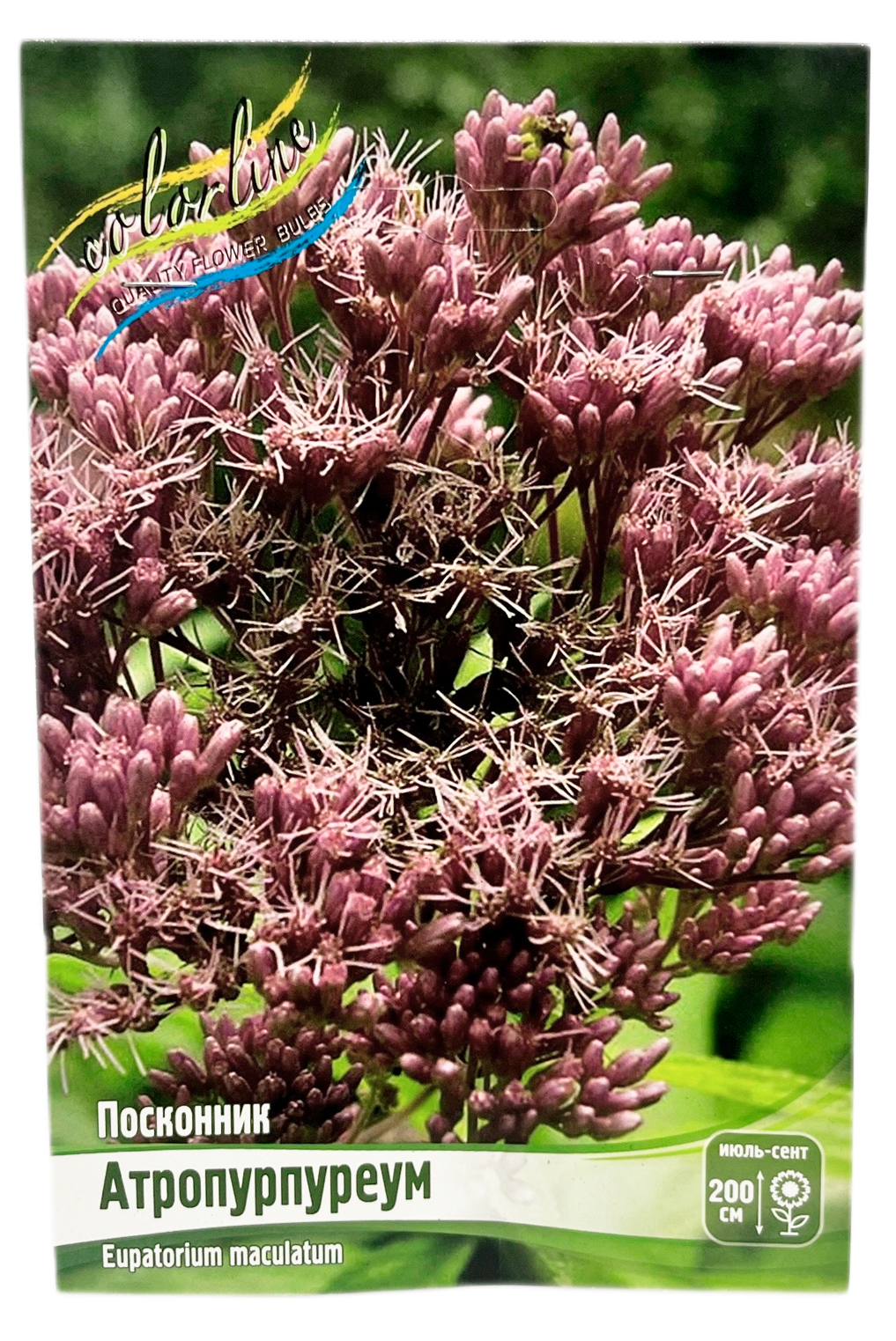 Посконник АТРОПУРПУРЕУМПредставляет собой высокорослый многолетник, который может достигать высоты до 200 см. Стебли прямостоячие и имеют темно-красный цвет, что придает растению особую декоративность. Листья удлиненной формы, окрашены в зеленый цвет и являются пестрыми. Соцветия щитковидные или метельчатые, достигают диаметра до 30 см и обладают розово-фиолетовой окраской.