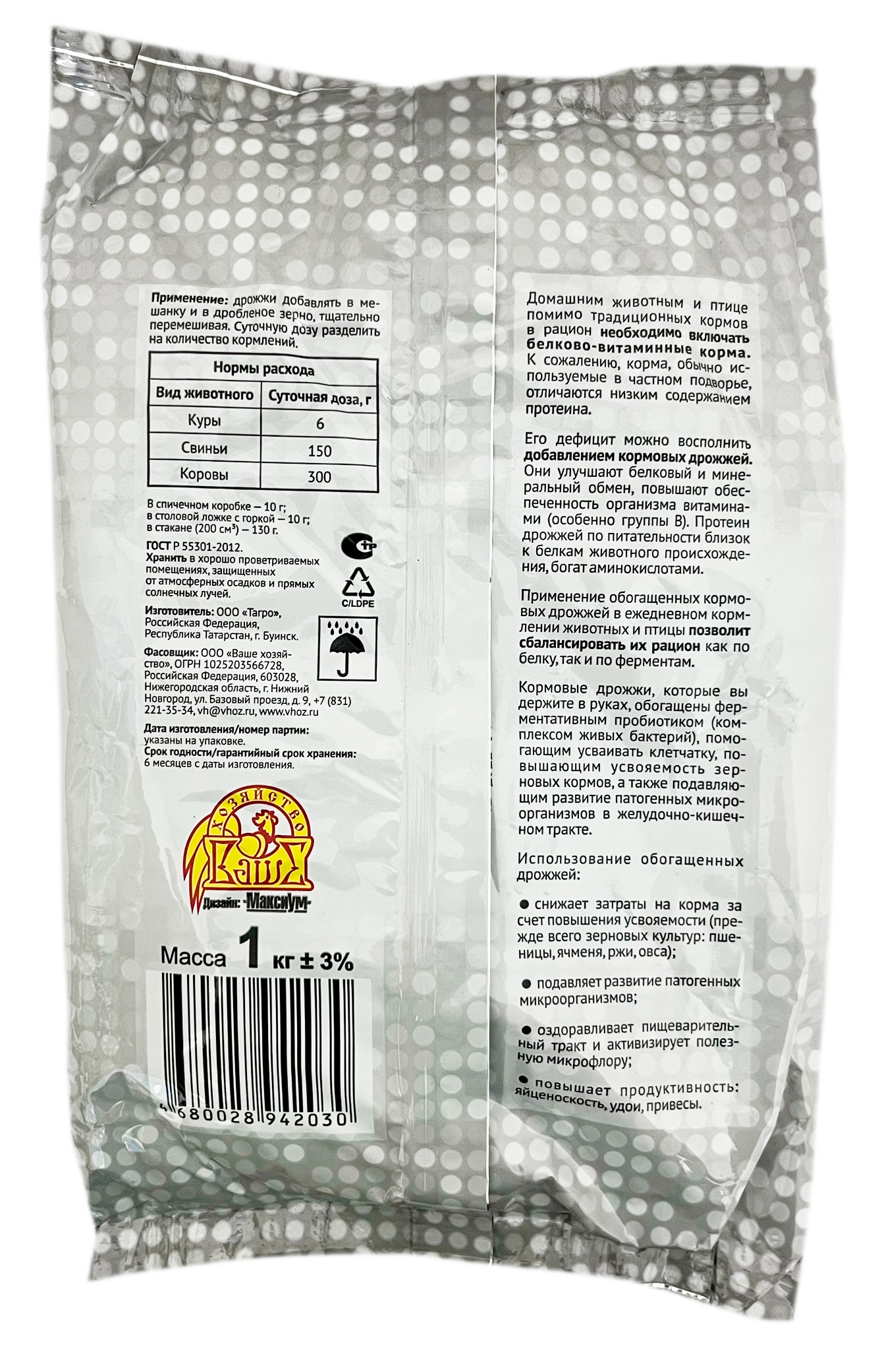 Дрожжи кормовые обогащенные 1кгПрименение обогащенных кормовых дрожжей в кормлении животных позволит сбалансировать их рацион как по белку, так и по ферментам.