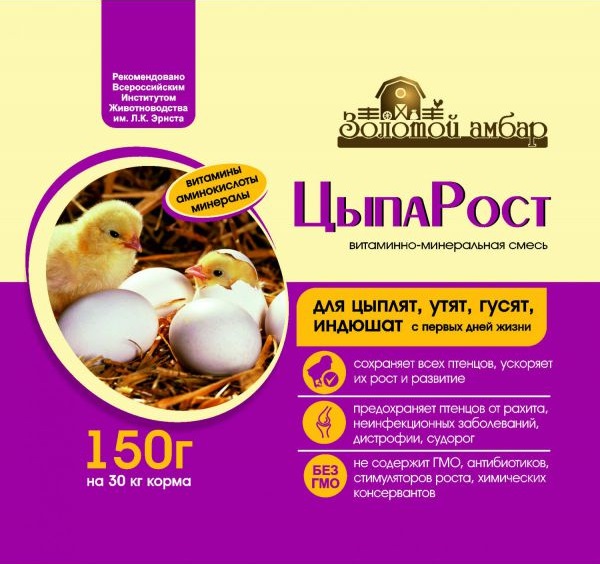 предохраняет птенцов от неинфекционных заболеваний, рахита, дистрофии, судорог и авитаминоза;