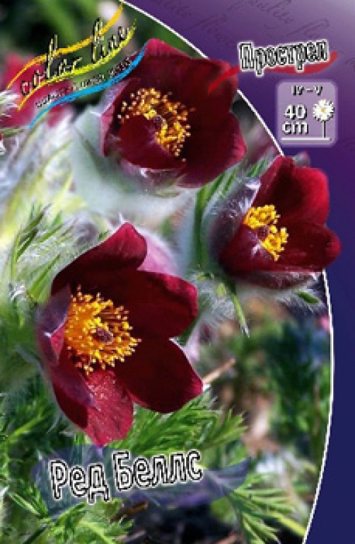 Прострел Рел Беллс относится к группе многолетние растение, высотой до 40 см. Листья ажурные, перистые, также сильно опушены, распускаются сразу после начала цветения. Цветки крупные, колокольчато-чашевидные, бархатно-красный. Семенные коробочки при созревании становятся похожи на пушистые шарики. Прострел обыкновенный сорта Ред Беллс - зимостойкий многолетник, распускающимися из-под снега в апреле до появления листьев. Месторасположение: предпочитает солнечные или слегка затененные участки. Почва: богатой органическими и минеральными удобрениями, хорошо дренированной, лучше содержащей известь. Размножать прострелы можно только семенным способом. Болезни и вредители: не подвержен болезням и не поражается вредителями. Использование: в ландшафтных садах, в групповых посадках по опушкам сосновых и лиственничных лесов и лесопарковых зон, на открытых лужайкахХарактеристики