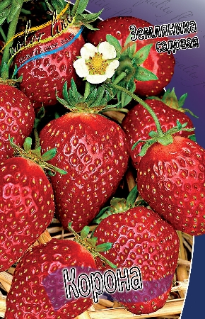 Земляника Садовая Корона среднеспелый, неремонтантный, очень урожайный. Ягоды крупные (до 35г), продолговатые, с вино-сладкой ароматной сочной мякотью, округло-конической или сердцевидной формы. Мякоть оранжево-красного цвета, сладкая, ароматная, без внутренних пустот и стержня. Посадка: между рядами 30 см - 20 см, сажать по корневую шейку, не засыпая землёй сердечко. Под посадку рекомендуется внести перегной. Время посадки: с ранней весны до осени. Месторасположение: солнце. Сорт хорошо переносит морозы и засуху, устойчив ко многим грибковым заболеваниям, но крайне уязвима к белой пятнистости и красной корневой гнили. Использование: открытый грунт, теплица. Рекомендуется укрытие листвой или соломой.Характеристики