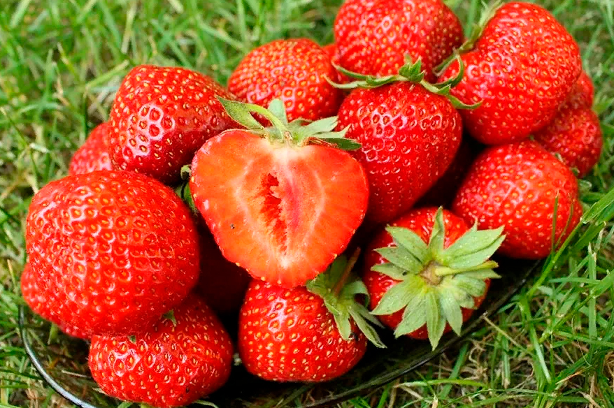 Зрелые плоды становятся темно-красными. Ягоды крупные и достигают в весе от 70 до 80 граммов, однако при повторном урожае могут мельчать в размере. Форма – округлая, коническая. Мякоть очень сочная, в меру плотная. Клубника покрыта плотной кожицей, которая позволяет легко переносить длительную транспортировку.
