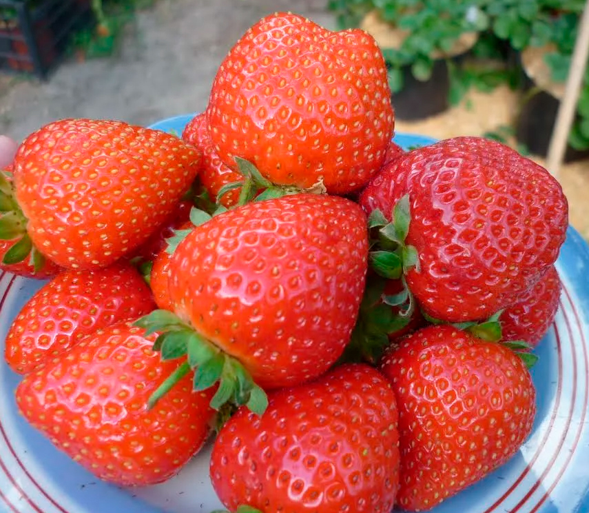 Плоды имеют ярко-красную окраску и коническую форму. Преимуществом является крупный и очень крупный размер ягод: масса каждой – 15-30 г. Вкус сладкий, аромат – классический ягодный, земляничный.