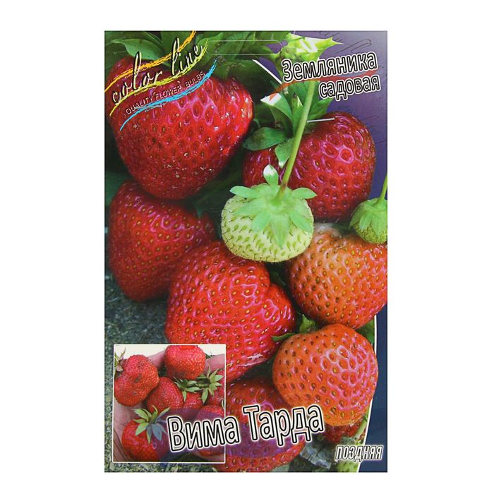 Огромные ягоды земляники (крупноплодной) Вима Тарда – плод усиленной работы голландских селекционеров. Крупные гребнеобразные ягоды имеют малиновую окраску с выраженным бело-зеленым кончиком. Вес ароматной земляники может достигать до 45 г, с одного куста за сезон удается собрать до 1 кг ароматных плодов. Мощные высокорослые кусты формируют завязь после позднего цветения, урожай созревает к середине июня.ПРЕИМУЩЕСТВА СОРТА