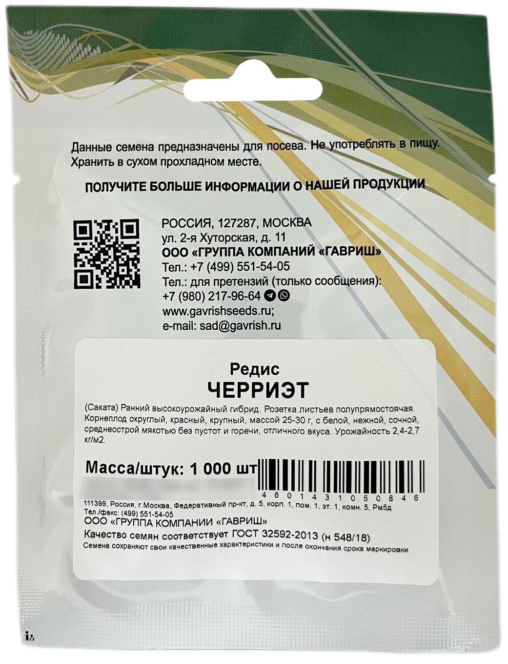 Редис Черриэт F1 ГАВРИШРанний высокоурожайный гибрид. Розетка листьев полупрямостоячая. Корнеплод округлый, красный, крупный массой до 30г, с белой, нежной, сочной мякотью без пустот и горечи. Отличный вкус!