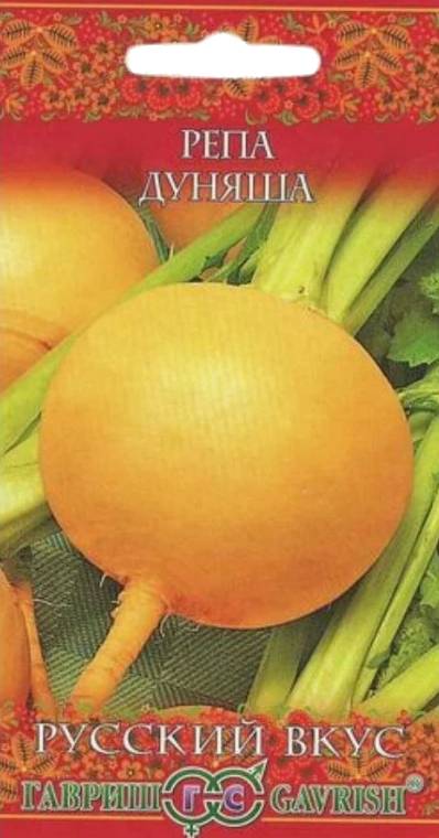 Репа Дуняша 0,5 г серия Русский вкусСреднеспелый (период от полных всходов до начала технической спелости 65-70 дней) сорт, с ценными диетическими и вкусовыми качествами. Репа вкусна и полезна в тушоном или печеном виде, ее используют в качестве начинки в пироги, а в сыром, измельченном виде добавляют в салаты. Корнеплод округлый, желтый, гладкий, с тонкой кожицей. Мякоть золотисто-желтая, сочная, нежная. Корнеплоды сладкие, без грубых волокон, содержат много витаминов, микроэлементов и минеральных веществ. Сорт устойчив к цветушности, холодостоек, теневынослив. Масса корнеплода 160-190 г. Посев проводят с апреля по июль по схеме 10-15х20-40см на глубину 1 см. Урожайность 2,3-2,9 кг/м2.