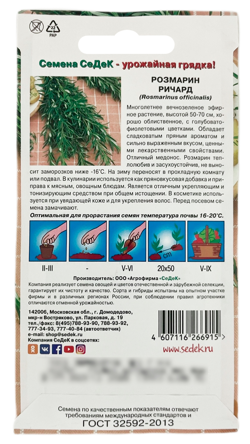 -Розмарин Ричард 0,05г семенаКаперсПижмаХренАлтейАмарант ОвощнойАнисБазиликБергамотБессмертникБорагоВалерианаДонникДушевникДушицаЗверобойЗмееголовникИссопКатранКервельКозлятникКориандрКотовникКровохлебка семенаКуминЛаванда семенаЛимонная трава ЦитронеллаЛопухЛофантЛюбистокЛюффаЛядвенецМайоранМелиссаМикрозелень семенаМомордикаМонарда семенаМыльнянкаМятаНаборы травОвсяный кореньОреганоПажитникПастернакПериллаПетрушкаПодорожникПортулак овощнойПустырникРасторопшаРепешокРомашка лекарственнаяРутаСалатСельдерейСкорцонераСкрытницаСолодкаСпилантесСтевияТабак курительный семенаТимьянТминТысячелистник лекарственныйУкропФенхельЦикорийЦиноглоссумЧаберЧередаЧернокореньШалфейШпинатЩавельЭстрагонЭхинацея лечебная семена