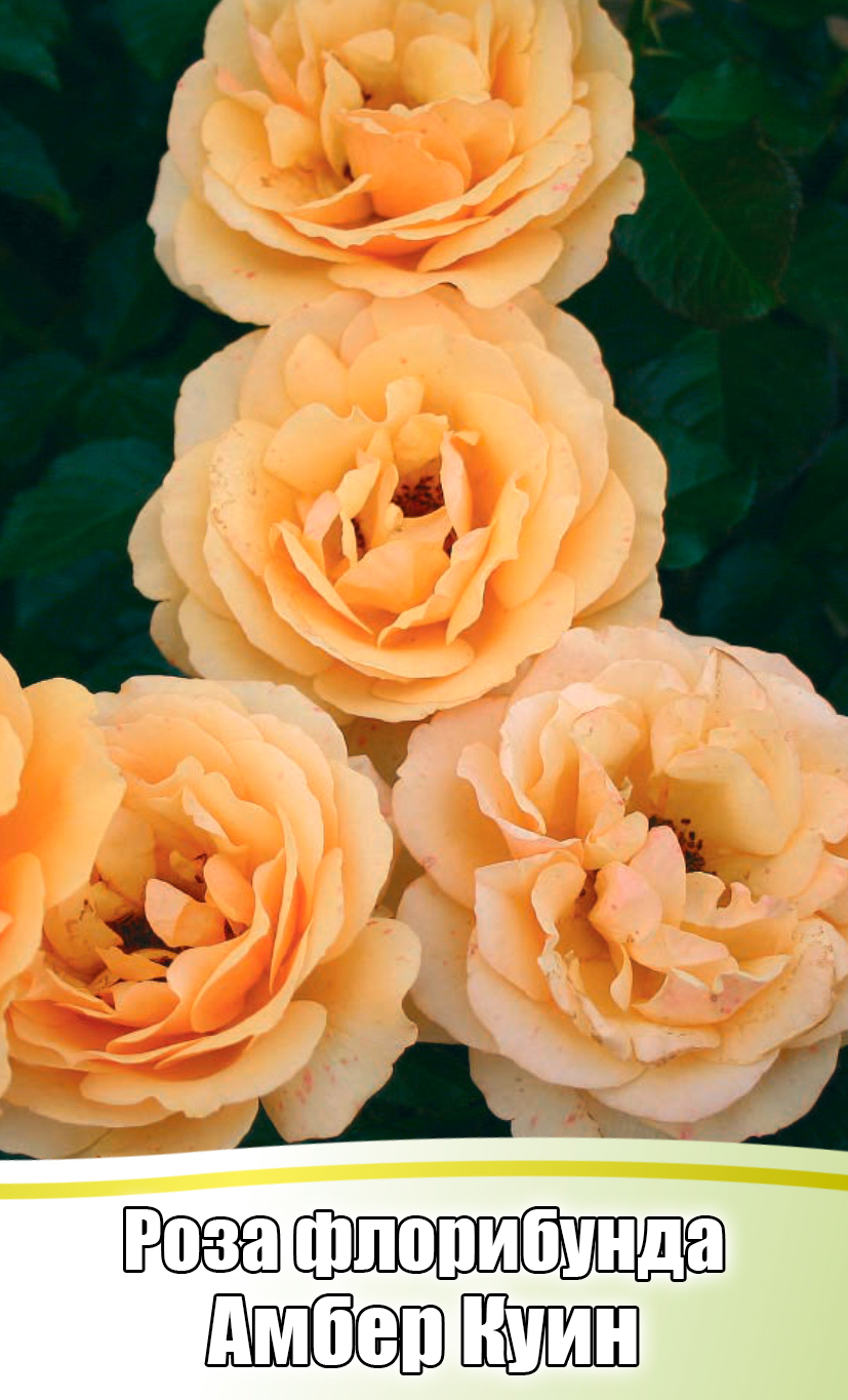 Роза Амбер Куин Rose Amber QueenРоза группы флорибунда, с нежным, утончённым ароматом, обильноцветущая. Раскидистый куст имеет скруглённую форму, высота от 80 до 100 сантиметров, листья крупные, цвет тёмно-зелёный. Окружность цветков составляет от 7 до 8 сантиметров, лепестки насыщенного абрикосового цвета или янтарно-жёлтого цвета. Некрупные бутоны (до 4,5 сантиметров) располагаются в соцветиях по 3-7 штук. Повторно цветущая, цветёт на протяжении всего лета, вплоть до начала осени. При выборе места посадки следует избегать продуваемых мест с закисленной и уплотнённой почвой. Растение отличается повышенной выносливостью и устойчиво к мучнистой росе и черной пятнистости.