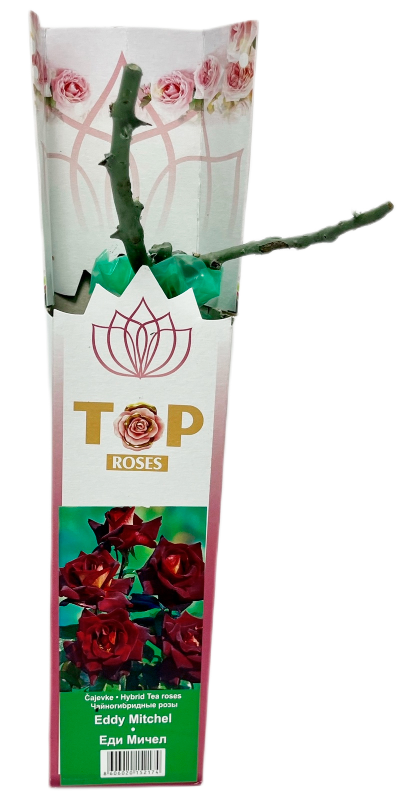 Чайногибридная роза ЕДИ МИЧЕЛ (EDDY MITCHEL)Куст компактный до 60 см в высоту, в ширину до 40 см. Листва блестящая, с металлическим отливом.
