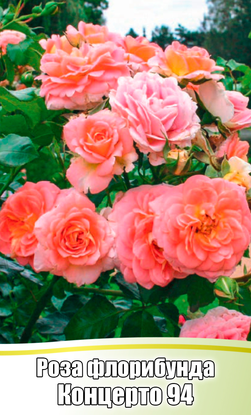 Роза Концерто 94 Rose Concerto 94Роза группы флорибунда, со слабым ароматом. Куст широкий, раскидистый, в высоту достигает от 80 до 100 сантиметров. Листья блестящие, тёмно-зелёного цвета. Бутоны чашевидной формы, махровые. Желтые, абрикосовые с оттенком охры, в окружности достигают от 8 до 9 сантиметров, появляются в кистях по 5-10 шт. Повторно цветущая, период цветения с июня по октябрь. Высаживать необходимо на участках, укрытых от ветра, с некислой, хорошо взрыхленной землёй. Растение устойчиво к таким заболеваниям, как мучнистая роса и чёрная пятнистость.
