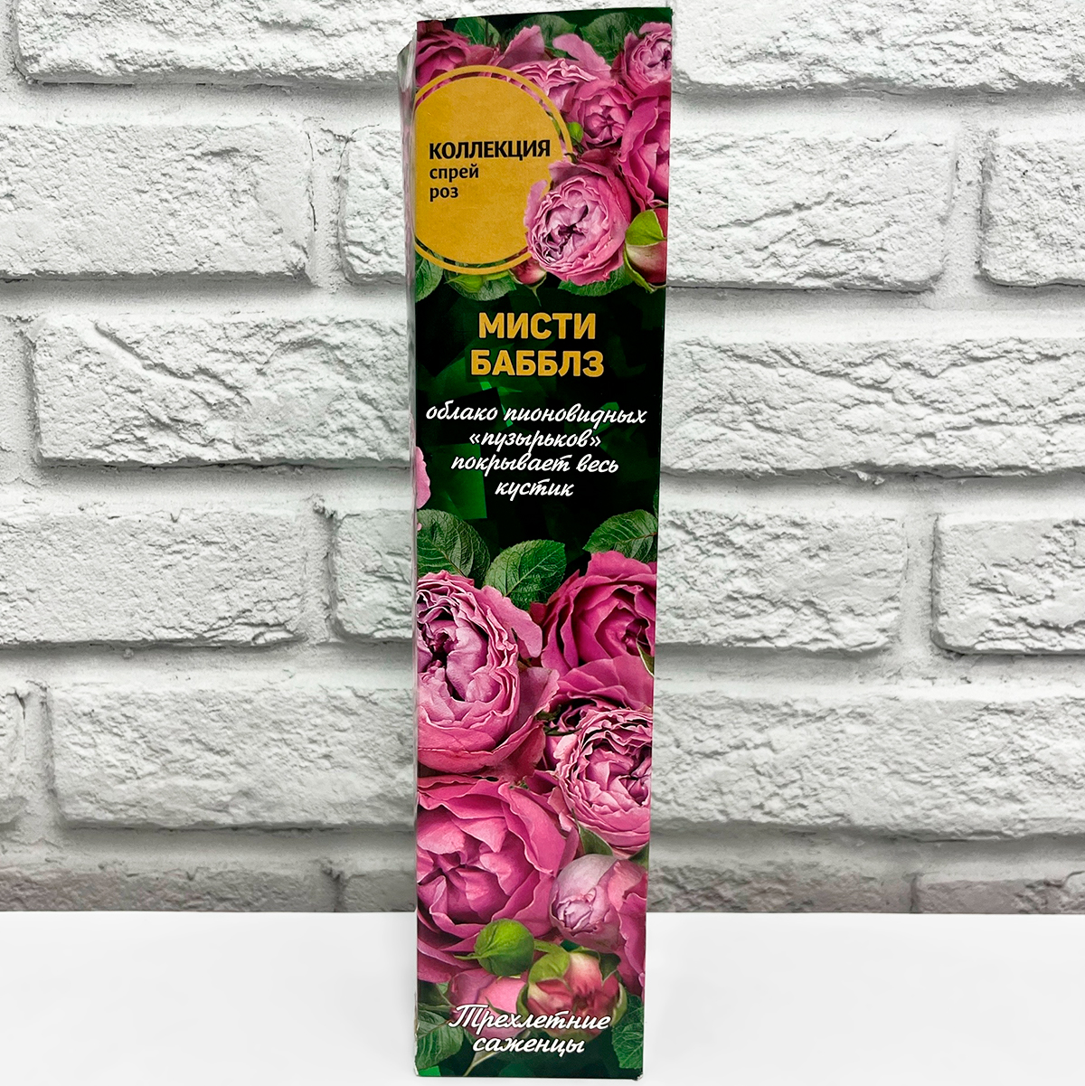 Роза спрей МИСТИ БАББЛЗНевероятно красивая пионовидная роза. Цветение обильное, продолжительное. Цветы густомахровые, плотные, сиреневого тона. Долгло стоят в букетах.