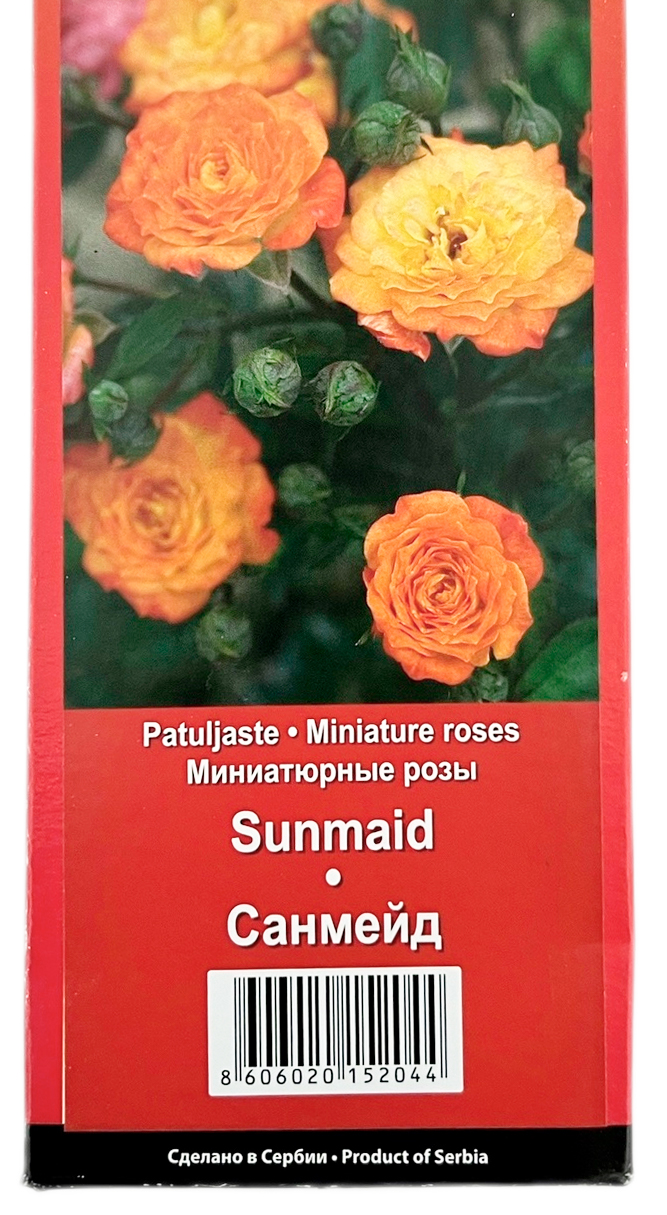 Миниатюрные розы САНМЕЙД (SUNMAID)Кустарниковая роза, которая отличается яркой окраской цветков и непрерывным цветением.