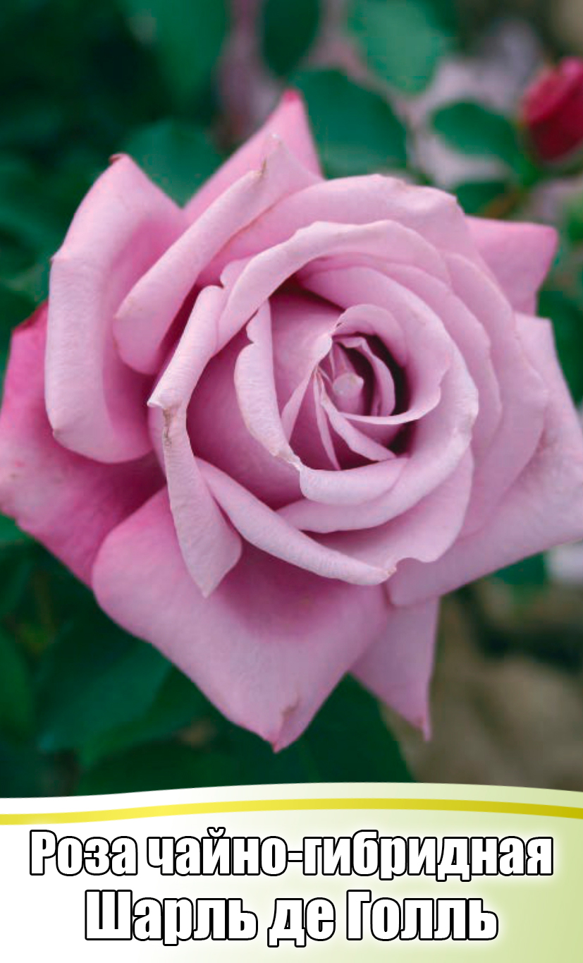 Роза Шарль де Голль Rose Charles de GaulleЧайно-гибридная роза, обильноцветущая, с ярко выраженным ароматом с нотками лимона и вербены. Растение с прямостоячими ветвями, достигающими в высоту от 80 до 100 сантиметров. Листья насыщенного тёмно-зелёного цвета. Бутоны в окружности от 12 до 14 сантиметров, густомахровые, равномерного сиреневого оттенка. В полураспустившемся состоянии имеет форму классической чайно-гибридной розы, с высоким бокалом. Повторно цветущая, цветение продолжается с начала июня до сентября. Высадка рекомендована в разрыхлённый, слабокислый грунт, в местах, укрытых от ветра. Растение мало подвержено таким заболеваниям, как мучнистая роса и чёрная пятнистость. В зимний период необходимо укрывать.