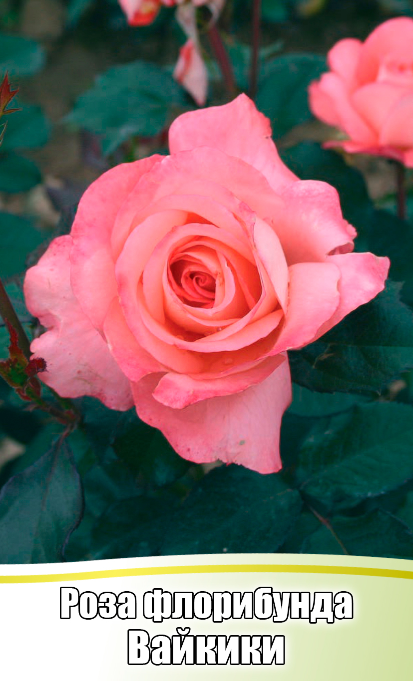 Роза Вайкики Rose WaikikiРоза группы флорибунда, обильноцветущая, с утонченным ароматом. Растение имеет скруглённую форму, с густо растущими ветвями, в высоту достигающими от 60 до 70 сантиметров. Листья глянцевые, тёмно-зелёного цвета. Цветки от 7 до 8 сантиметров в окружности, и не более 4,5 сантиметров в высоту. Цветки махровые, тёплого розового цвета, с жёлтым основанием, при этом края лепестков более яркого оттенка. Цветение повторное, период цветения длится с июня по ноябрь. Растение желательно высаживать в местах, укрытых от ветра, с разрыхлённым, некислым грунтом. Растение мало подвержено таким заболеваниям, как мучнистая роса и чёрная пятнистость.