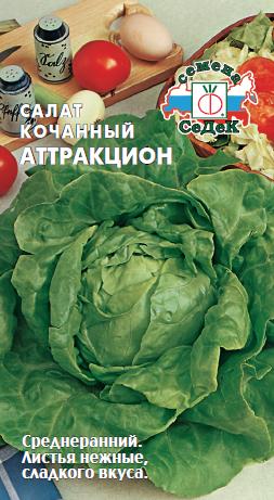 Среднеранний (45-55 дней) сорт кочанного салата с маслянистой консистенцией листьев, для открытого грунта и пленочных укрытий. Кочан средней плотности, массой 100-200 г. Листья светло-зеленые, гладкие, нежные. Вкус сладкий. Ценность сорта: дружное формирование урожая, высокие товарные качества. Рекомендуется для употребления в свежем виде, использования в различных салатах.Характеристики