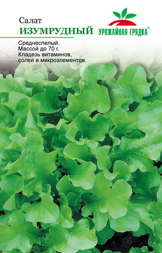 Среднеспелый сорт (период от массовых всходов до начала технической спелости 50-60 дней) листового салата. Растение среднерослое, розетка листьев полуприподнятая. Лист темно-зеленый, средней толщины, глянцевый, средне-пузырчатый, мякоть маслянистая. Масса одного растения 60-70 г. Ценность сорта: длительная сохранность хозяйственной годности, устойчивость к стеблеванию. Рекомендуется для использования в свежем виде, как источник минеральных солей, витаминов и микроэлементов.Характеристики