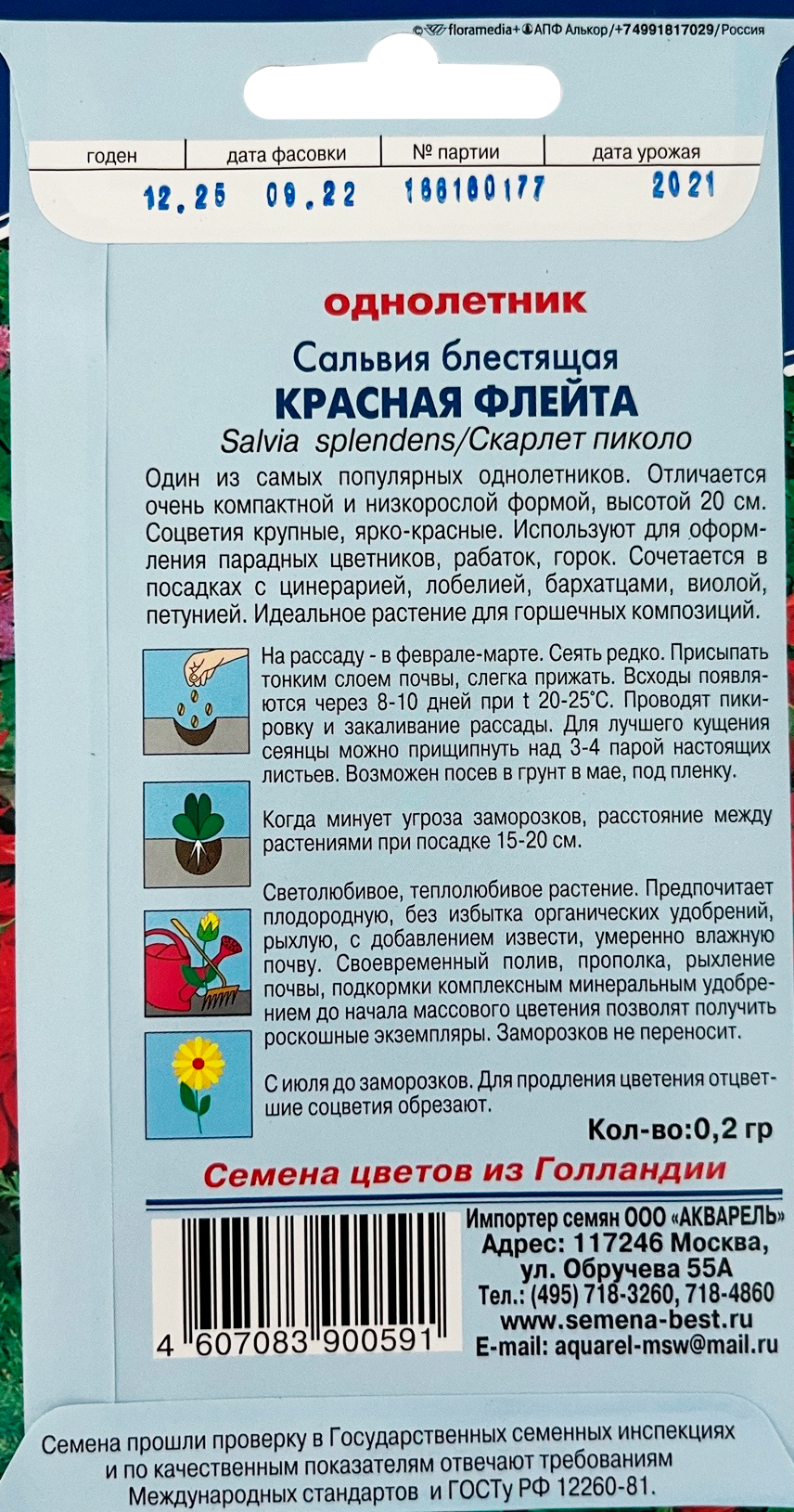 Сальвия Красная флейтаОдин из самых популярных однолетников. Отличается очень компактной и низкорослой формой, высотой 20 см. Соцветия крупные, ярко-красные. Используют для оформления парадных цветников, рабаток, горок. Сочетается в посадках с цинерарией, лобелией, бархатцами, виолой. Идеальное растение для горшечных композиций.