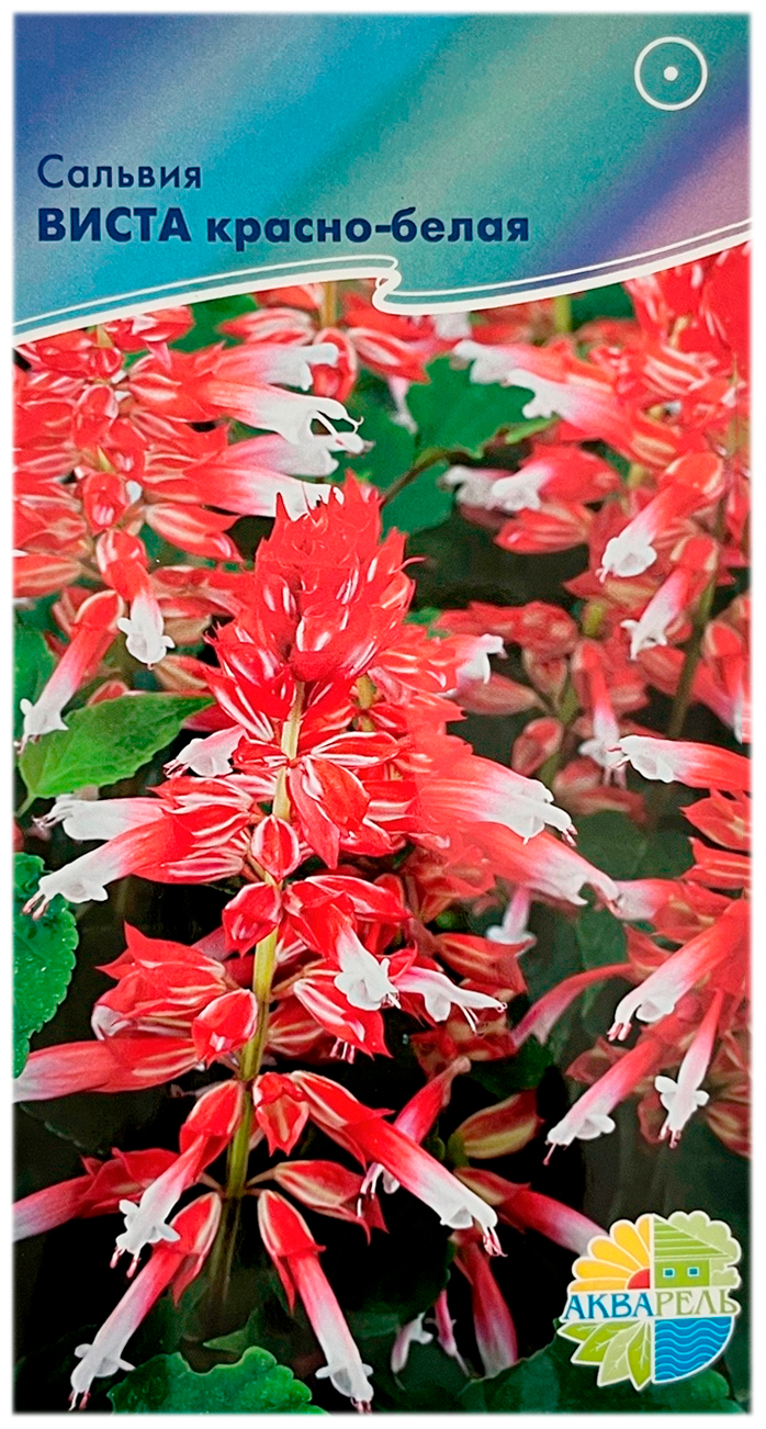 Сальвия сверкающая ВИСТА красно-белая АКВАРЕЛЬОдин из самых популярных однолетников. Куст компактный, высотой 25-30 см. Плотно расположенные двухцветные красно-белые цветки образуют хорошо упакованное соцветие и вместе с темно зеленой листвой сохраняют интенсивную окраску весь сезон. Используют для оформления парадных цветников, рабаток, горок. Сочетается в посадках цинерарией, лобелией, бархатцами. Идеальное растение для горшечных композиций.
