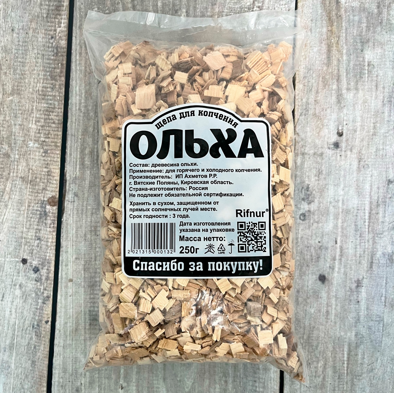 Щепа ОЛЬХА для горячего и холодного копчения.Особенно хорошо использовать для копчения рыбы, сала, сыра, курицы и мясных продуктов. Ольховую щепу хорошо использовать для дымогенератора с компрессором. Щепа не подвисает, хорошо тлеет и не тухнет. Щепа изготавливается по определенной технологии из живой древесины, не допускаются примеси и влажность более 12%.