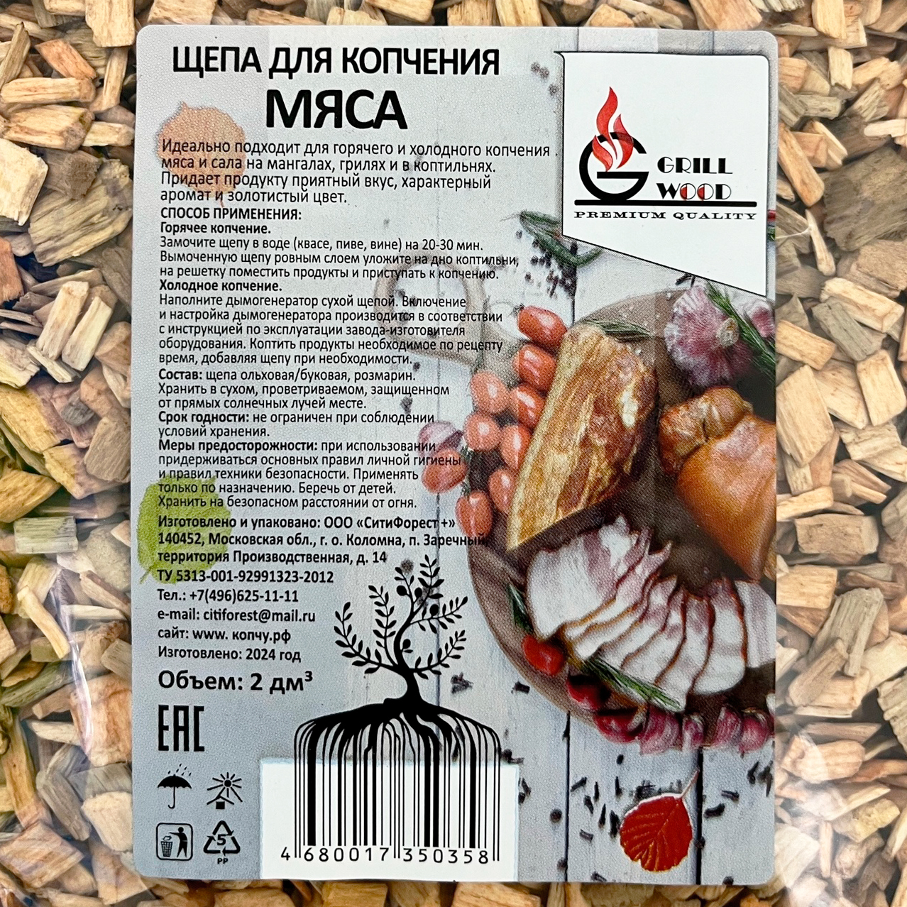 Щепа для копчения мяса GRILL WOODИдеально подходит для горячего и холодного копчения мяса и сала на мангалах, грилях, коптильнях. Придает продукту приятный вкус, характерный аромат и золотистый цвет.