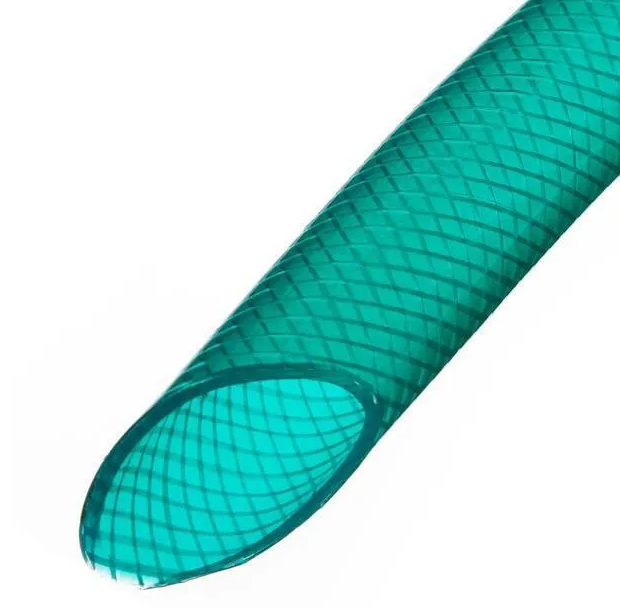 3-х слойный садовый шланг для бытового применения, внешний слой прозрачного зеленого цвета, плетеное текстильное армирование, внутренний слой прозрачного зеленого цвета. Изготовлен из первичного сырья.Характеристики
