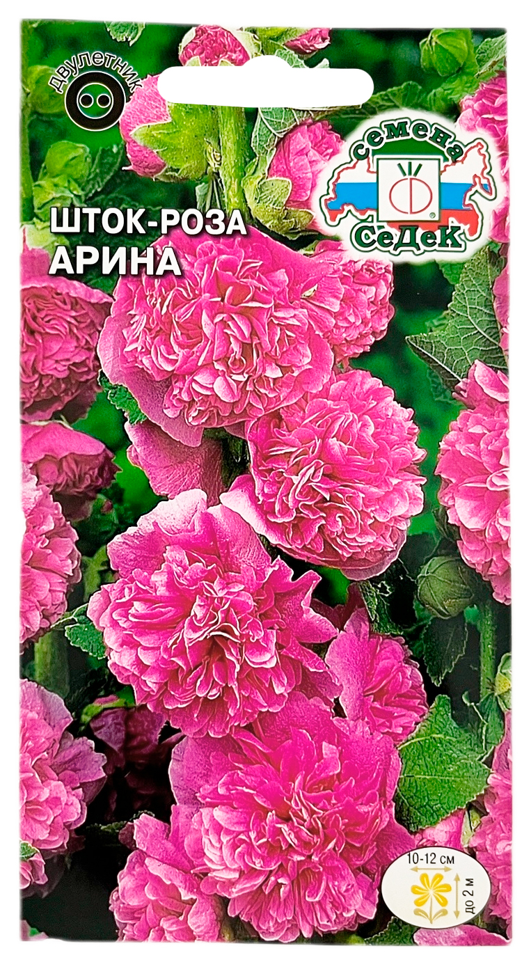 Шток-роза (мальва) АРИНА СеДеКОбильноцветущее травянистое растение с прямым стеблем, высотой до 2 м, с крупными густомахровыми ярко-розовыми цветками, диаметром 10-12 см, собранными в длинные кистевидные соцветия. Листья лопастные, покрыты мелкими волосками. Мальва засухоустойчива, предпочитает солнечные места с плодородной хорошо обработанной почвой. Используется в миксбордерах, для вертикального декорирования. В срезке долго сохраняет декоративные качества.