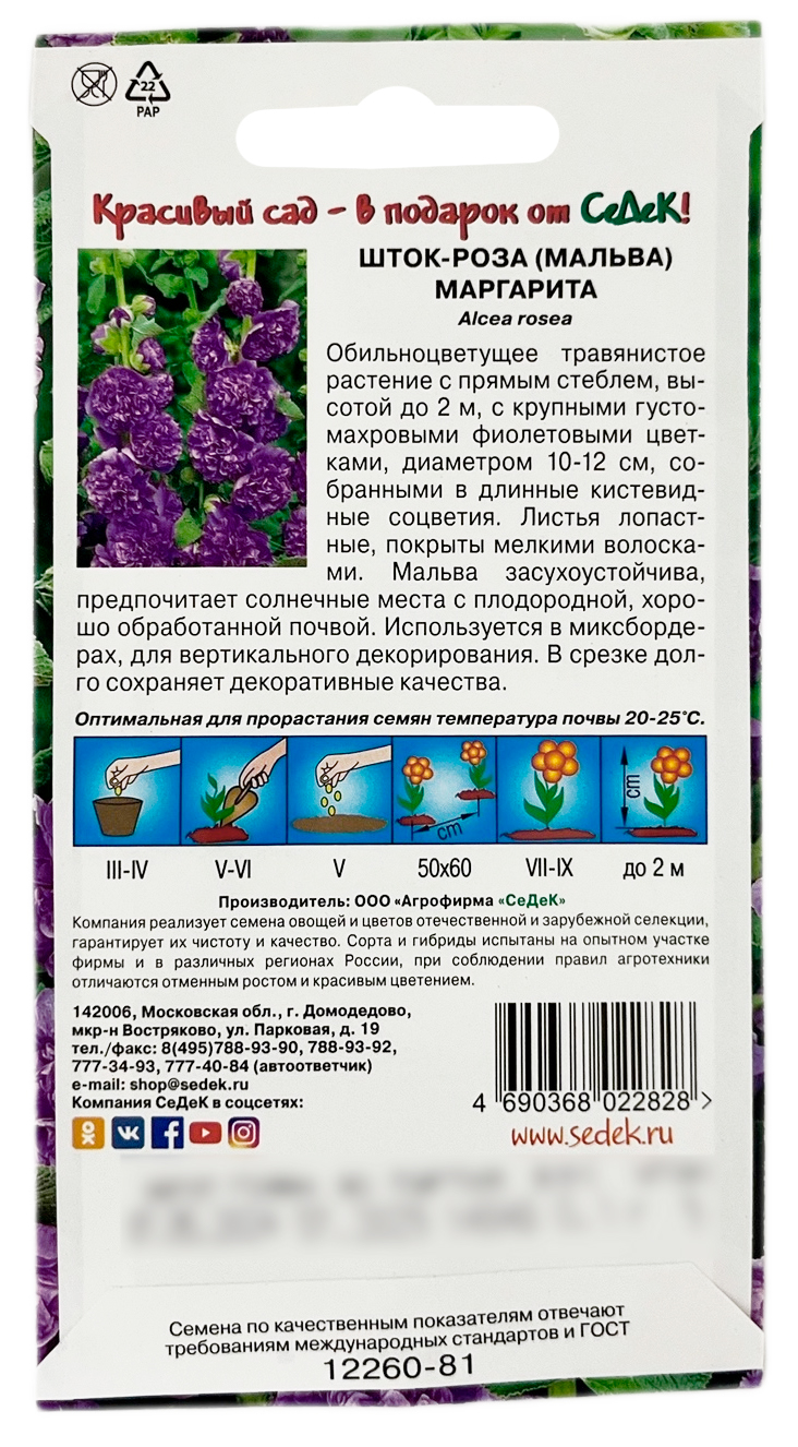 ----Шток-роза Маргарита (мальва, фиолетовая) (Евро 0,1) семенаСеменаПосадочный материалГоршки, кашпо, ящики для рассадыУкрашения и дизайн дачного участкаГрунтУдобрения, стимуляторыЯдохимикаты (пестициды)От комаров тараканов муравьев мышей крыс кротовИнструмент, оборудование садовоеТовары для животныхКухня садоводаФлористические материалыЛитератураФитолампыПоливочное оборудование