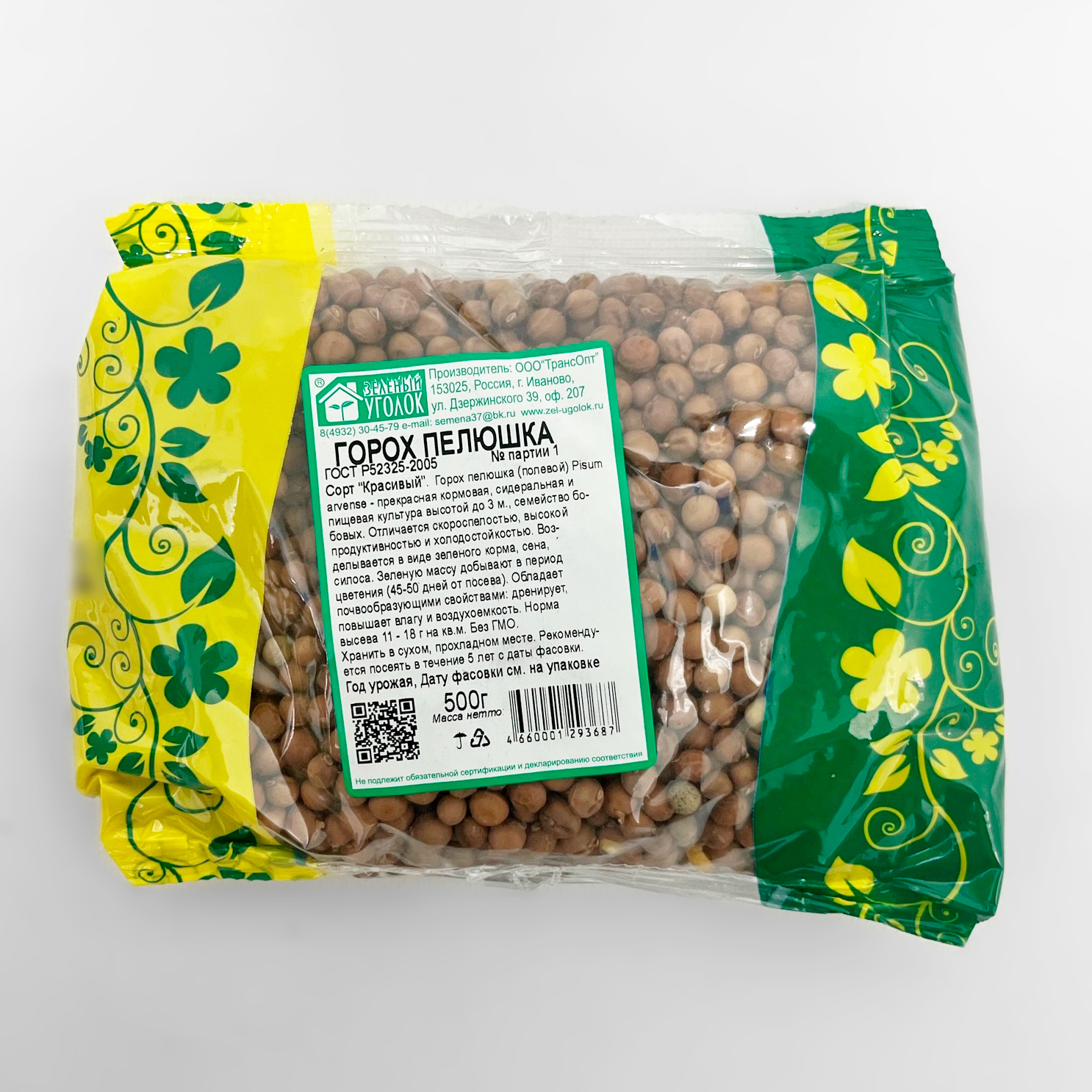 Горох пелюшка 500гГорох полевой или Пелюшка — однолетнее бобовое растение. Имеет стержневую корневую систему длиной до 1,5 метра. Его стебель высотой до 300 сантиметров. Плод — удлинённый многосемянной боб (до 10 семян, имеющих округлую форму), длиной от 4 до 7 сантиметров. Горох полевой — растение ярового типа. Холодоустойчив, влаголюбив, светолюбив, не требователен к почвам, скороспелый.