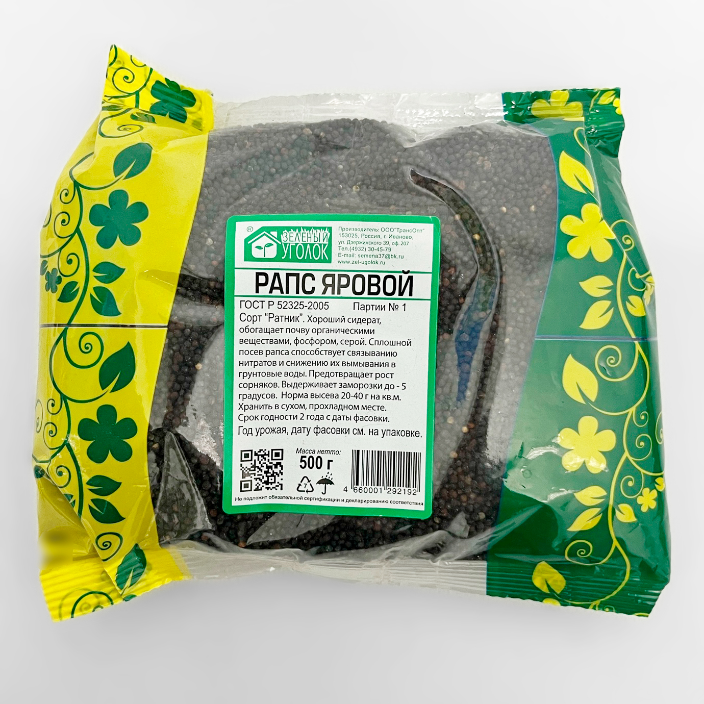 Рапс 0,5 кг Зеленый уголок семена