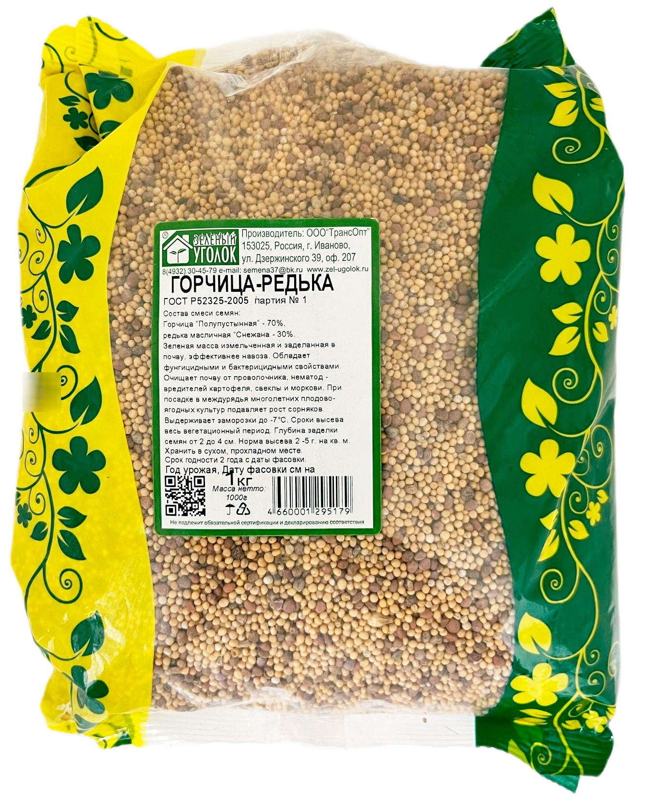 Зеленый уголок смесь горчица/редька 70/30, 1кгСидерат, который выращивается в качестве природного удобрения для улучшения физических и механических свойств почвы, накапливает влагу за счет пористости почвы, выводит почвенных вредителей, снижает рост сорных растений и подавляет содержащиеся в почве вредные патогены.