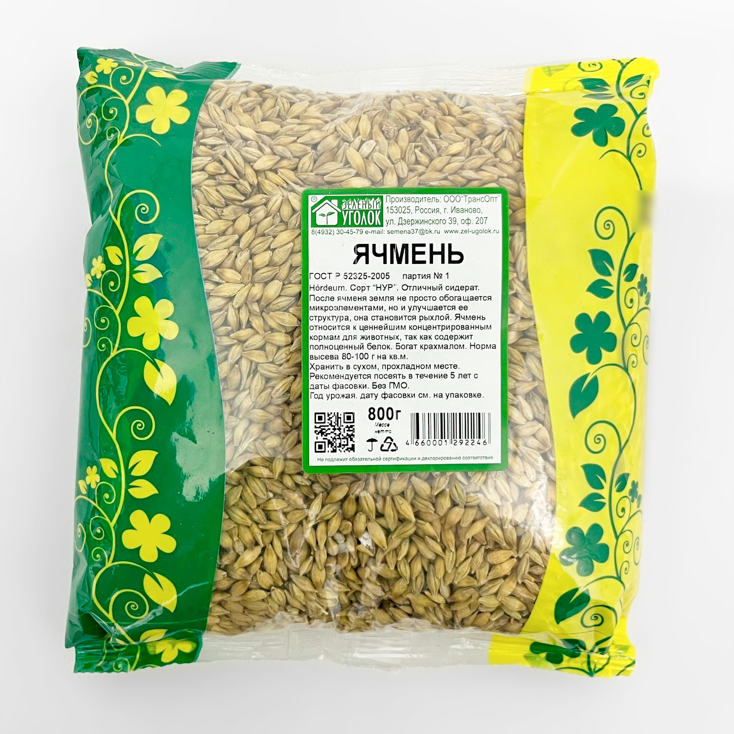 Ячмень 0,8кг Зеленый уголок семена