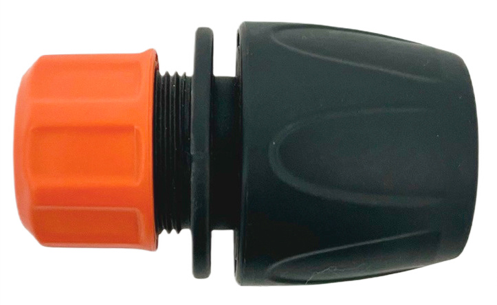Для закрепления коннектора на шланг используется цанговое соединение - самое надёжное соединение, исключается подкапывание в месте соединения даже при сильном напоре. Шланг надевается на внутренний штуцер, при затягивании внешней гайки "лепестки"цанги смыкаются, и шланг диаметром 1/2 надёжно фиксируется.