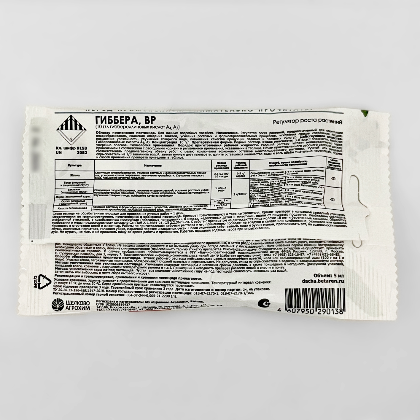 ГИББЕРА, ВР 5млРегулятор роста гормонального типа для стимулирования плодообразования, ускорения роста и созревания плодов яблони в системах интенсивного садоводства, а также овощных культур.