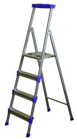 Облегченная конструкция. Усиленный алюминиевый профиль для прочности и устойчивости стремянки. Нескользящие ступени. Устойчивая платформа. Соединение ступеней с рамой усилено 4-мя стальными заклепками. Многофункциональный лоток для инструментов. Широкие ступени 8 см.Высота до платформы, мм 940