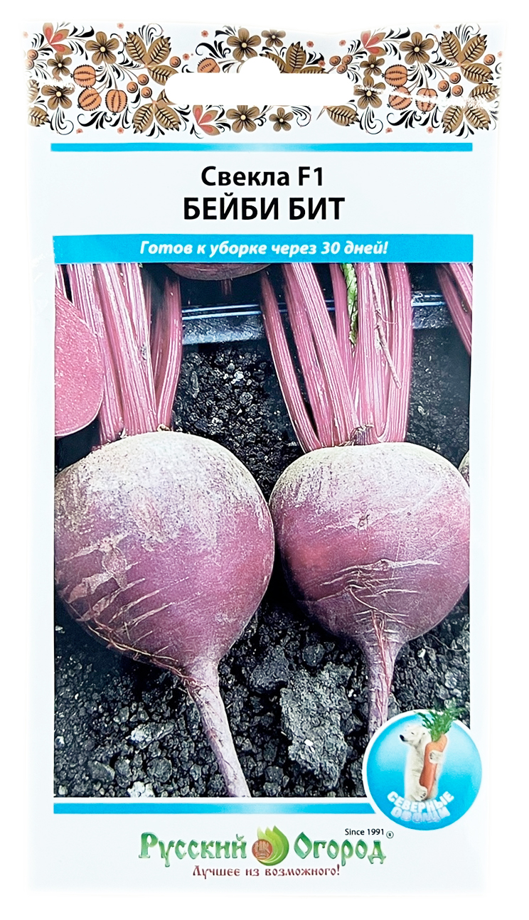 Свекла БЕЙБИ БИТ Русский ОгородРаннеспелый гибрид с технической спелостью через 90-95 дней после всходов. Первый урожай пучковой продукции (когда корнеплоды достигнут 1,5 см в диаметре) можно собирать уже через 60 дней. Корнеплод округлый, с тонкой кожицей, массой 150-250 г. Мякоть нежная, сочная, без колец, насыщенного бордово-фиолетового цвета. Один из лучших гибридов для получения самой первой витаминной пучковой продукции!