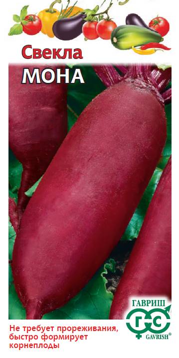Свекла Мона 1,0 гСреднеранний (62-115 дней от всходов до технической спелости) сорт. Посев в грунт конец апреля – начало мая. Схема посадки 6х30 см на глубину 2,0-2,5 см. Одноростковый. Корнеплод цилиндрический, красный, головка средняя, слабоопробковевшая, мякоть темно-красная, нежная, сочная, со слабовыраженными кольцами. Погруженность в почву небольшая, выдергивается хорошо. Масса корнеплода 200-330 г. Вкусовые качества хорошие и отличные. Урожайность 5,5 - 5,8 кг/м2. Ценность сорта: не требует дополнительных затрат труда на прореживание в период выращивания (одноростковость), стабильная урожайность, раннее и быстрое формирование корнеплодов. Рекомендуется для хранения, консервирования и выращивания на пучковую продукцию.