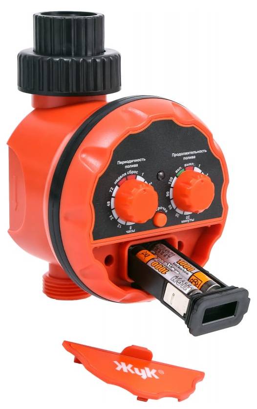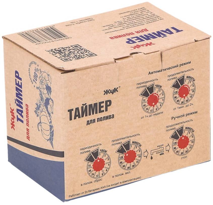 Таймер для полива ЖукТаймер для капельного полива Cicle Жук 4630035335721 служит для автоматического управления подачей воды. Позволяет регулировать время полива от 1 до 120 минут, частоту полива от 1 часа до 7 суток. Работает от двух батареек типа ААА. Имеет адаптер под коннектор для быстросъёмного подключения шланга. Вес таймера: 300 грамм.