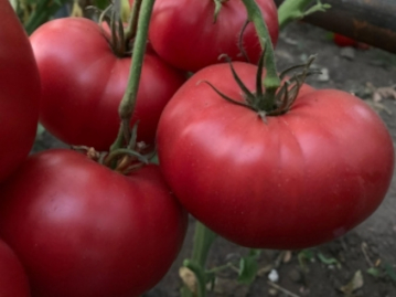 спелые помидоры малинового цвета, чем спелее, тем насыщеннее цвет,