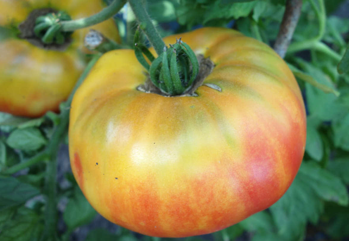 Плоды неплотные, биколоры- желтые с розовым румянцем, в кисти 1-3 шт массой 500 г, превосходного вкуса, одна мякоть.